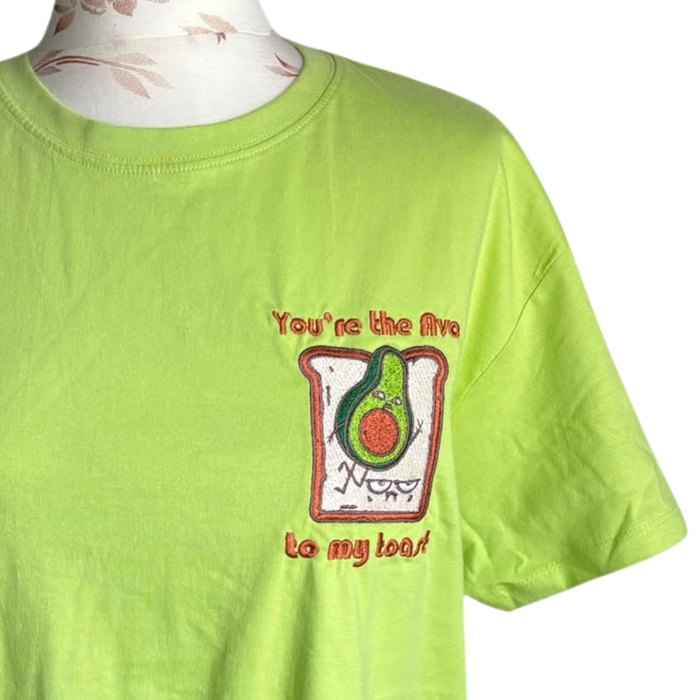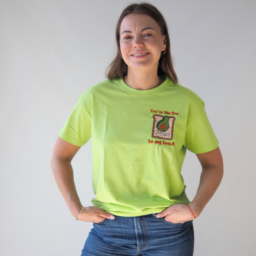 T-shirt pistacjowy bawełniany z haftem awokado – okrągly dekolt, oversize Unisex